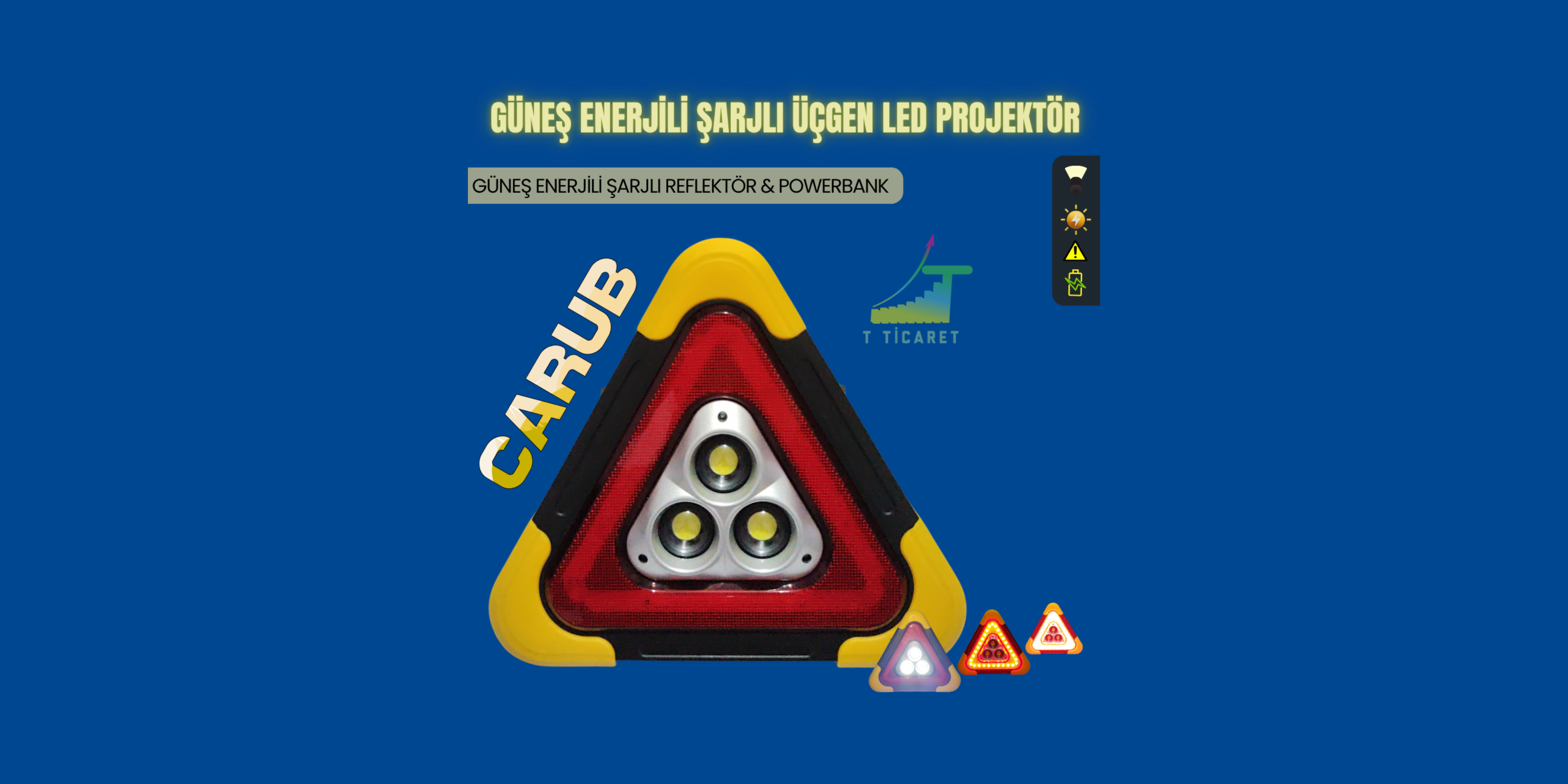 Güneş Enerjili Reflektör , Şarjlı Kamp Lambalı Üçgen Led - 5 Fonksiyonlu - Usb Şarj Girişli