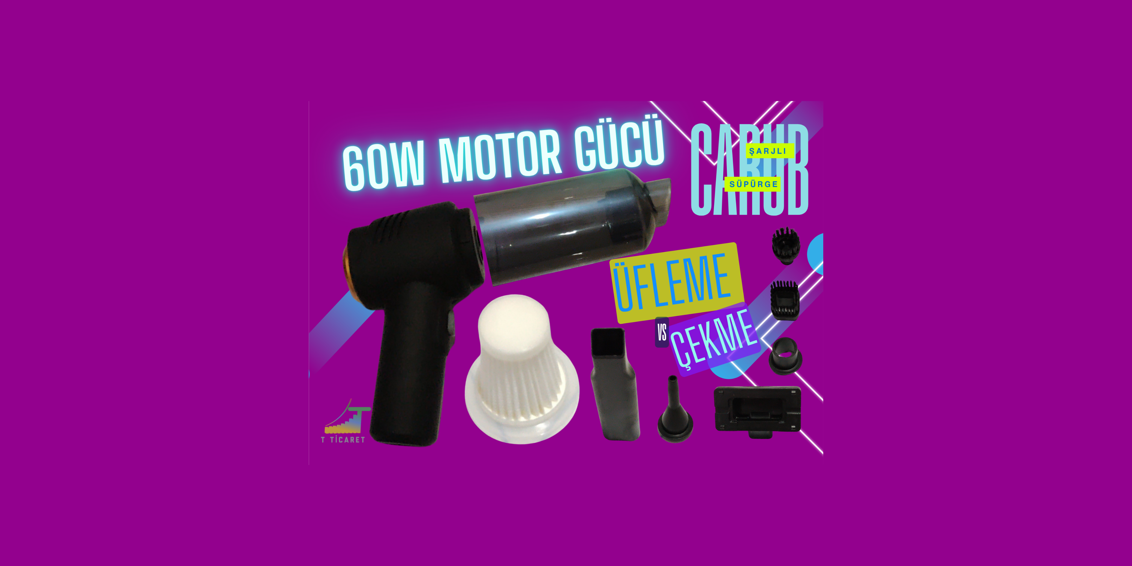 Şarjlı Araç Süpürgesi - Arabada Ve Evde - 60W Motor Gücü - Üfleme Ve Çekme Özellikli - CARUB